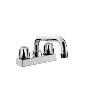 - Accommodates dual-handle faucet with 4″ center