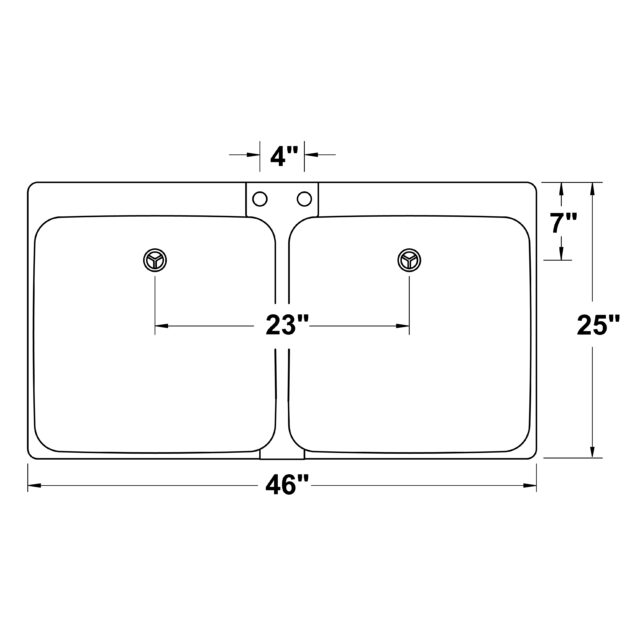 - Accommodates dual-handle faucet with 4″ center