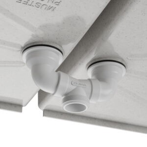 - Includes Twin-Drain Waste connector which joins drain assemblies to assure rapid and uniform waste water discharge…includes washers, slip nuts and stoppers.