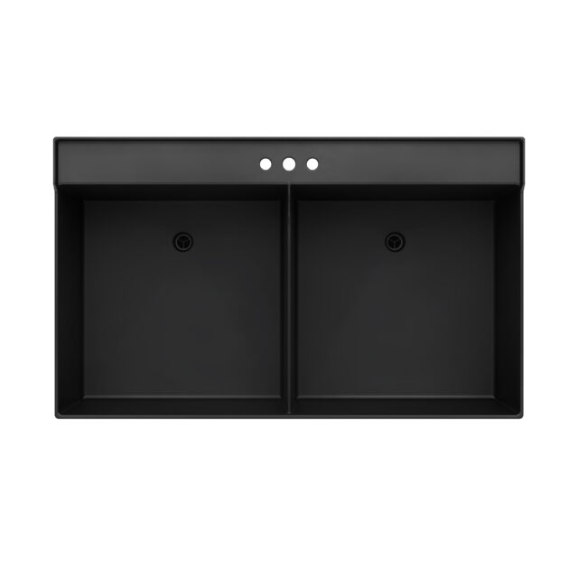 General: UTILATWIN® Laundry/Utility Tub model 27FB, as manufactured by E.L. Mustee & Sons, Inc. Tub shall be one-piece molded construction using thermoplastics with matched metal molds. Tub to include integrally molded twin drain assembly for connection to standard 1-1/2" P or S-trap, stopper, and powder coated metal legs with levelers. Recessed divider wall between tubs. 38 gallon capacity tub, 14-3/8" deep. Shall meet ANSI Specification Z 124-2022. Color: Black.