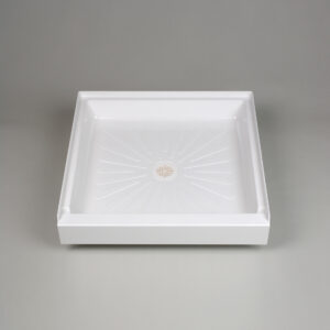 General: Furnish and install as shown on plans. DURABASE® square, single threshold shower floor model 3232M as manufactured by E.L. Mustee & Sons, Inc. Floor to be one-piece, molded fiberglass, made with matched metal molds. Surface to be slip-resistant Starburst® design that does not interfere with the flow of water. Size 32” x 32”. Shoulder will be no less than 3” high or less than 1” wide. Tiling flange will extend not less than 1” higher than the threshold which provides an integral molded water barrier. Threshold will be not less than 4 ½” high. Molded-in drain and drain seal for installation of 2” iron DWV (Sch. 40) PVC or ABS sanitary drain pipe. Removable strainer. ANSI Specification Z 124-2017. IAPMO (UPC/cUPC) Listed. Color: White.