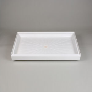 General: Furnish and install as shown on plans. DURABASE® rectangular, single threshold shower floor model 3254M as manufactured by E.L. Mustee & Sons, Inc. Floor to be one-piece, molded fiberglass, made with matched metal molds. Surface to be slip-resistant Starburst® design that does not interfere with the flow of water. Size 32” x 54”. Shoulder will be no less than 3” high or less than 1” wide. Tiling flange will extend not less than 1” higher than the threshold which provides an integral molded water barrier. Threshold will be not less than 4 ½” high. Molded-in drain and drain seal for installation of 2” iron DWV (Sch. 40) PVC or ABS sanitary drain pipe. Removable strainer. ANSI Specification Z 124-2017. IAPMO (UPC/cUPC) Listed. Color: White.